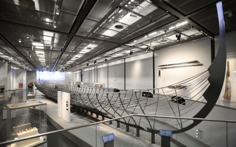 The exhibition showcased an array of artifacts spanning four continents. On display were various swords, axes, coins, jewelry, poetry, and religious images. The centerpiece of the exhibition was a meticulously reconstructed 37-metre-long Viking warship. It’s the largest Viking ship ever discovered. Approximately one-fifth of the original timbers have survived, primarily the keel and bottom planking, but the entire ship’s outline is impressively represented by a steel frame, giving it an ethereal appearance.