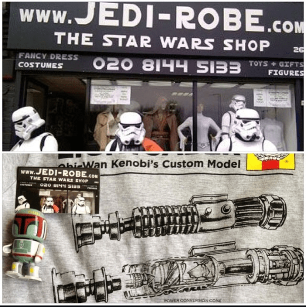 Address: Jedi-Robe.com – The Star Wars Shop, 262 Church Road, Next to McDonalds – Target Roundabout. Northolt, Middlesex, London, United Kingdom, UB5 5AW.