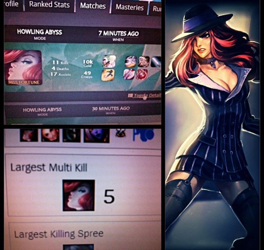This lady was one of those champions you get to play early when you join League but I always preferred playing her on ARAM than Summoner’s Rift. I’ll leave Summoner’s Rift to Kennen 😉 I got a bunch of pentakills (wiping out the entire enemy team) with Miss Fortune and doing this in her Mafia outfit made me feel untouchable haha